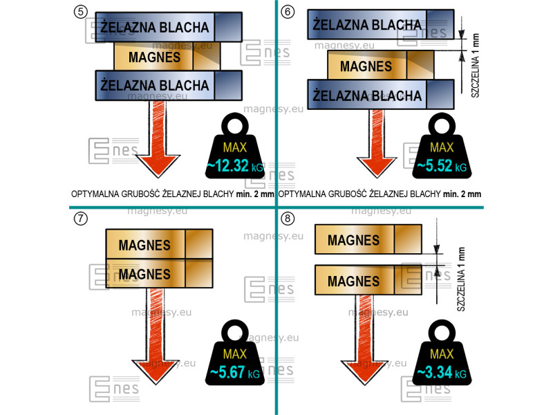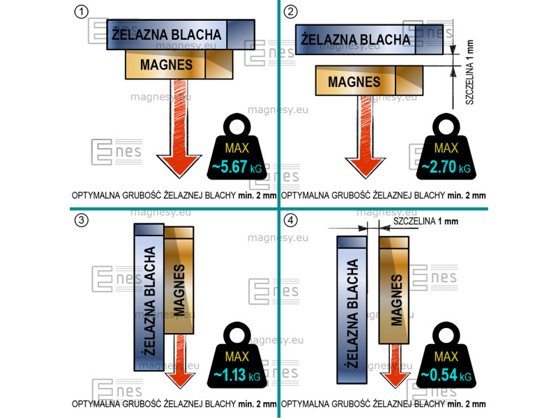 Jest to mocny magnes neodymowy. Najważniejsze cechy tego magnesu to wysoka indukcja, duża siła oderwania i przyciągania, oraz wysoki udźwig, oczywiście jak na taką wielkość magnesu. Jest to magnes trwały. Kierunek magnesowania wzdłuż wysokości oznacza, że biegunem magnetycznym jest prostokątna płaszczyzna, której jednym bokiem jest długość magnesu, a drugim szerokość magnesu.
