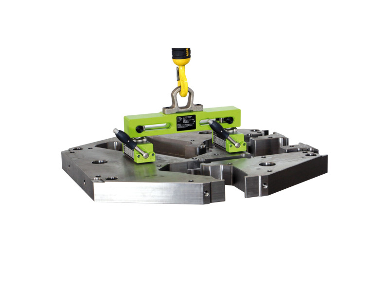 Magnetyczny uchwyt trawersowy FX-KT 480-800 dzięki zastosowaniu dwóch chwytaków magnetycznych FX-300 pozwala na podnoszenie i transportowanie niemal każdego elementu. Szczególnie jest to przydatne do elementów z centralnym wycięciem, gdzie zastosowanie jednego chwytaka może być niebezpieczne ze względu na przesunięty środek ciężkości. Uchwyt FX-KT idealnie sprawdzi się również przy detalach o większej długości. Dzięki zastosowaniu dwóch chwytaków serii FX i regulowanym rozstawem niweluje się ugięcie przenoszonych elementów. Dodatkowo użycie dwóch chwytaków o mniejszym udźwigu sumarycznym niż jeden, pozwala na lepsze wykorzystanie przy elementach cienkich, gdzie grubość detalu wpływa na udźwig rzeczywisty. Łatwy montaż i demontaż chwytaków sprawia że chwytaki mogą być także wykorzystane pojedynczo, np. do przenoszenia mniejszych elementów. Stalowa konstrukcja trawersy jest całkowicie powlekana proszkowo.