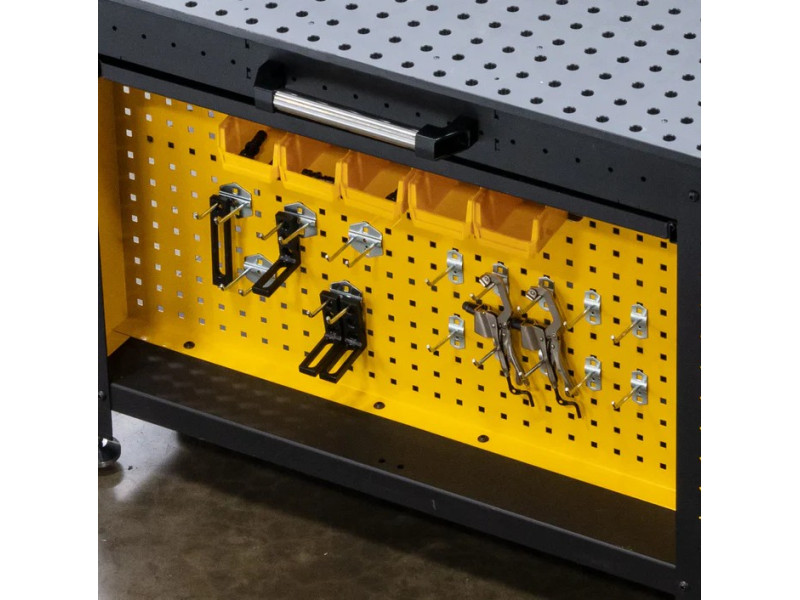 Półki, regały i panel z otworami pozwalają przechowywać, organizować i mieć pod ręką zaciski i akcesoria |