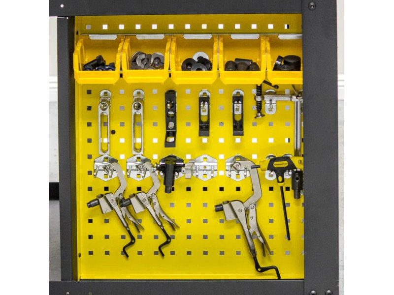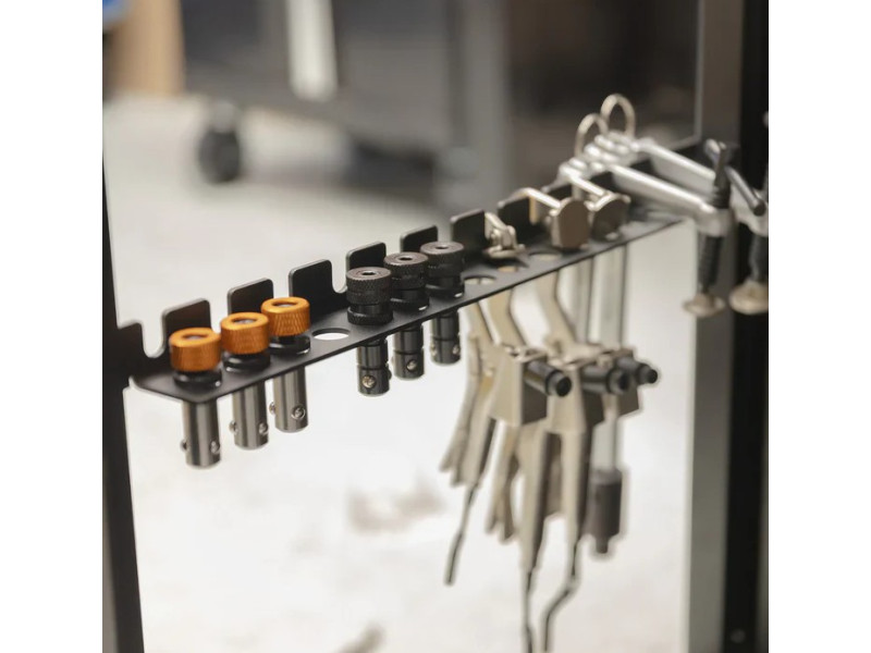 Półki, regały i panel z otworami pozwalają przechowywać, organizować i mieć pod ręką zaciski i akcesoria |
