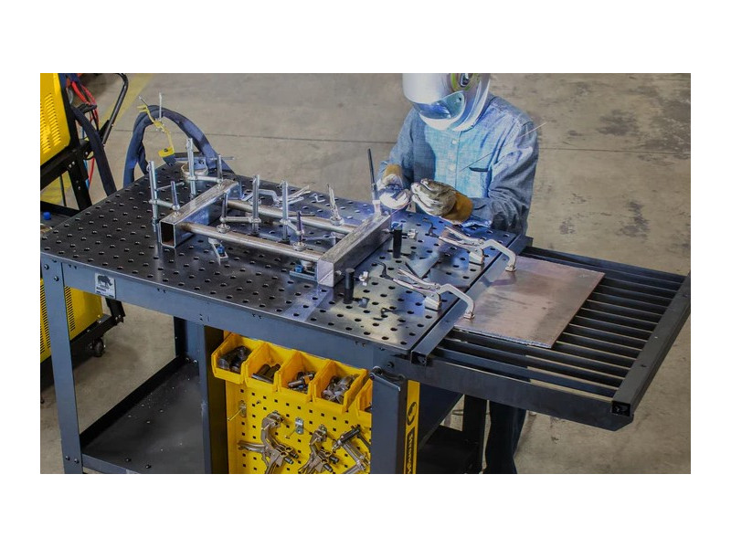 Płyta stołu jest dwustronna, a dzięki azotowaniu powierzchnia jest odporna na odpryski spawalnicze, rdzę i zarysowania. |