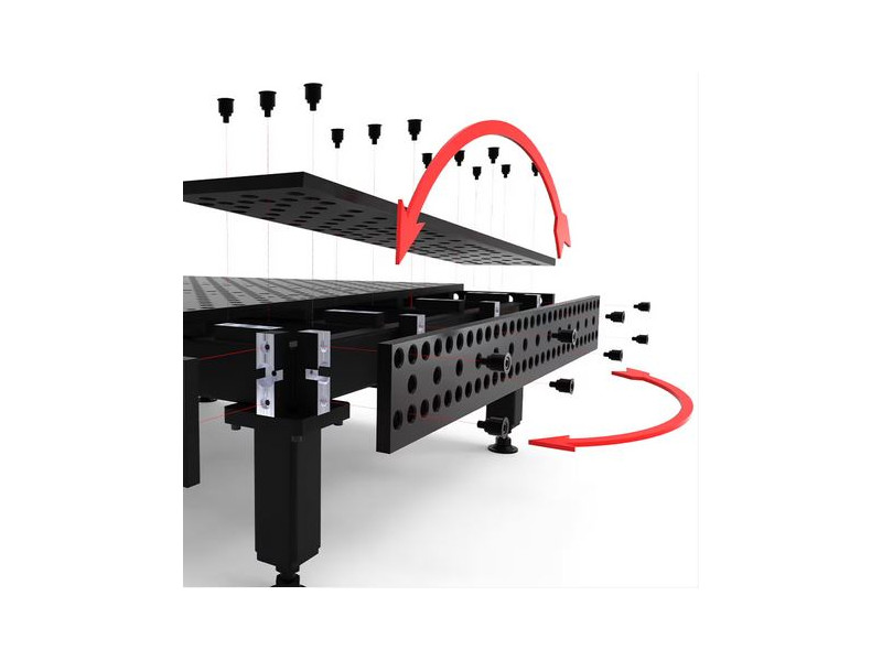 Konstrukcja rurowa ramy stołu Alpha 28 zapewnia lepszą płaskość i sztywność skrętną w porównaniu z ramami wykonanymi wyłącznie z blachy. Sztywna rama z modułowymi płytami w modelu Alpha 28 oznacza mniej nierówności i mniej skręceń w porównaniu z konstrukcjami spawanymi. Spawana konstrukcja wykonana wyłącznie z blachy często prowadzi do odkształceń i nierówności w rogach i środku.