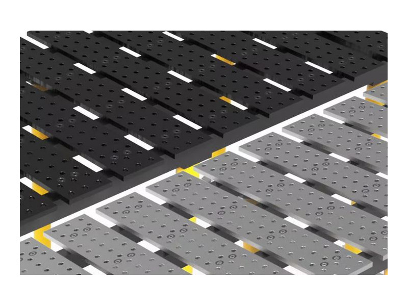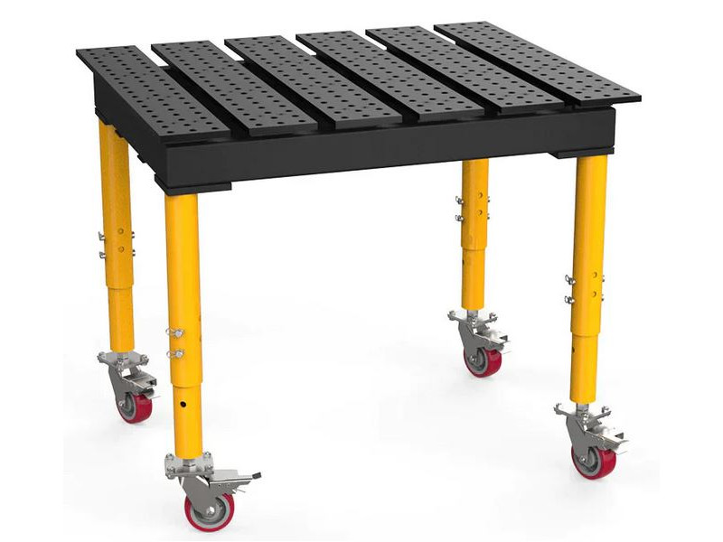 Nasze jednostronne stoły do ciężkich obciążeń mają otwory na górnej powierzchni i są wyposażone w opatentowane, samopozycjonujące się i odwracalne płyty blatu. Precyzyjne ustawianie, pozycjonowanie i mocowanie elementów zapewnia wyższą jakość i wygodę spawania. Stoły mają otwarte szczeliny między płytami górnymi. Zapewniają one dodatkową wszechstronność, umożliwiając przesuwanie narzędzi mocujących lub szczypiec za pomocą adapterów T-Slot lub Sliding Channel na otwartych krawędziach rowków jako powierzchniach mocujących.
